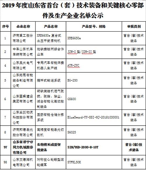 公司納入山東省首臺(tái)套生產(chǎn)企業(yè)名單