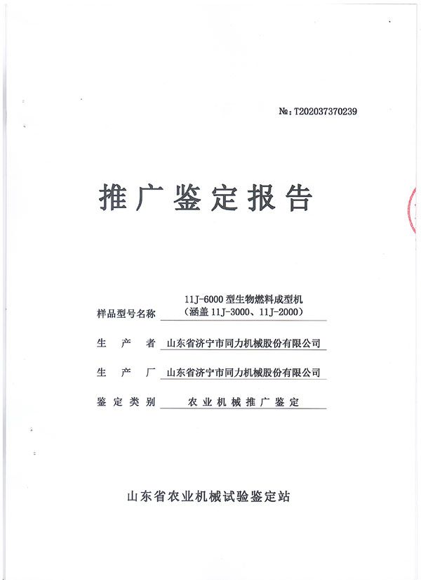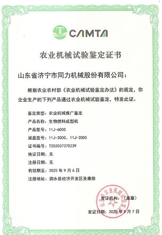 熱烈祝賀山東省濟寧市同力機械股份有限公司11J-6000、11J-3000、11J-2000產品通過了山東省農機鑒定站的農業(yè)機械推廣鑒定,獲得了山東省農業(yè)機械試驗鑒定證書。